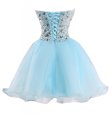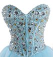 Organza Sweetheart Sleeveless Lace Up Beading Prom Gown in Baby Blue