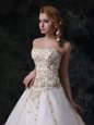 Organza Sweetheart Sleeveless Zipper Beading and Embroidery Wedding Dress in White