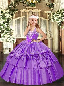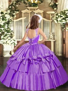 Organza V-neck Sleeveless Lace Up Beading and Ruffled Layers Little Girl Pageant Dress in Lavender