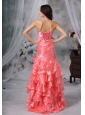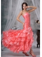 A really shinning and stunning dress! The close-fitting bodice bedecked with a glamorous straight neck and a heavily beaded bust is shimmery and dazzling in light. The densely pleated waist will daintily curve your slim figure for sure. A split in the wrapped silhouette with tiers of ruffles makes the dress flattering and enchanting. A charming lace up back completes the perfect look.Â
