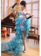 This strapless short prom gown is the hot one in new tendency. The short one is accented with paillette and floral flowers throughout dress. The waistband brights up the entire dress. Many tiers with black hemline cascades to floor forming a court train that adds unique and charm to the dress.
