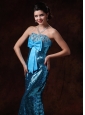 I can find no words that is suitable enough for me to describe my feeling of this dress. The dress is so sassy and stunning that I am sure you will be eye-catching at your party. This shining prom dress features a heavily beaded sweetheart neckline and the whole dress is adorned with carefully placed and fashionable sequins. The lovely bowknot in the middle of the bust and the small train adds more beauty and grace to the dress. Don't hesitate to take it home!