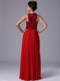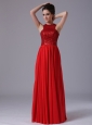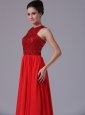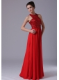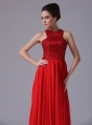 Paillette Over Skirt Chiffon High-Neck Empire Red Affordable Celebrity Prom Dress