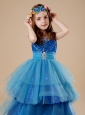 Home >  Special Occasion Dresses >  Little Girl Pageant Dresses > Paillette Over Skirt Layer A-Line Halter Blue Tulle 2013 Flower Girl Dress