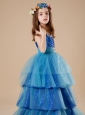 Paillette Over Skirt Layer A-Line Halter Blue Tulle 2013 Flower Girl Dress