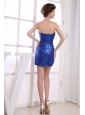This notable dress creates a touching effect which makes you the hotline. The sapphire blue sexy prom dress features a strapless bodice with a sweetheart neckline. Sparkle and fashionable paillettes decorate the dress all over. The sexy and shimmery dress has a mini length skirt making the dress more glamour and eye catching. Hidden zipper up back finishes the perfect design.