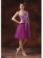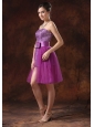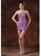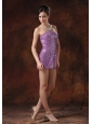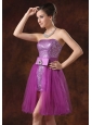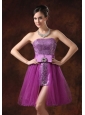 Paillette Over Skirt Strapless Column / Sheath Fuchsia Mini-length Prom Dress Sashes/Ribbons