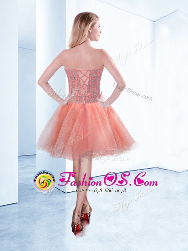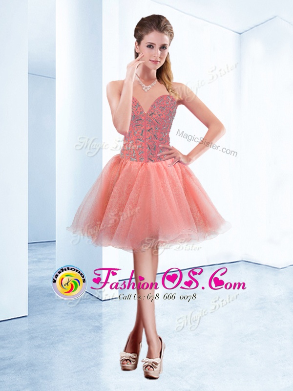 Home >  Prom Dresses >  Perfect Prom Dresses > Peach A-line Sweetheart Sleeveless Tulle Mini Length Lace Up Beading Homecoming Dress