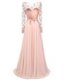 Peach Backless Scoop Beading Prom Dresses Chiffon Long Sleeves Sweep Train
