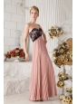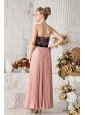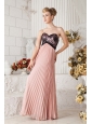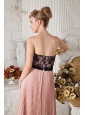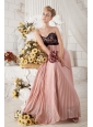 Peach Chiffon Pleated Prom Dress Covered with Black Lace
