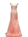 Peach Evening Outfits Sweetheart Sleeveless Sweep Train Zipper