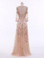 Home >  Evening Dresses > Peach Evening Wear Tulle Long Sleeves Beading