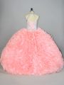 Peach Lace Up 15th Birthday Dress Beading and Ruffles Sleeveless