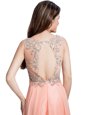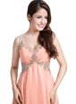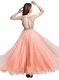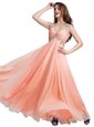Peach Organza Backless V-neck Sleeveless Floor Length Dress for Prom Beading