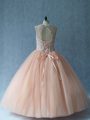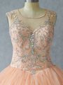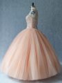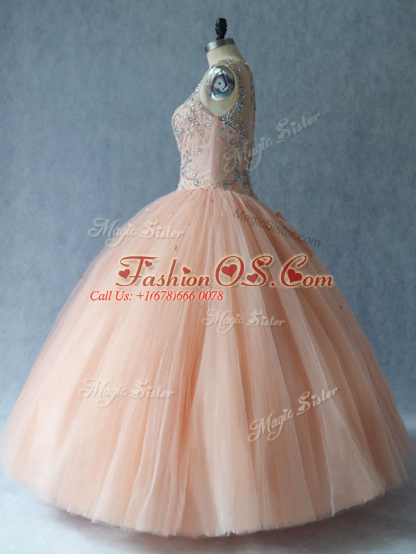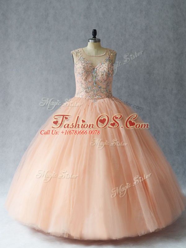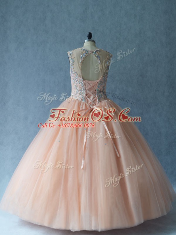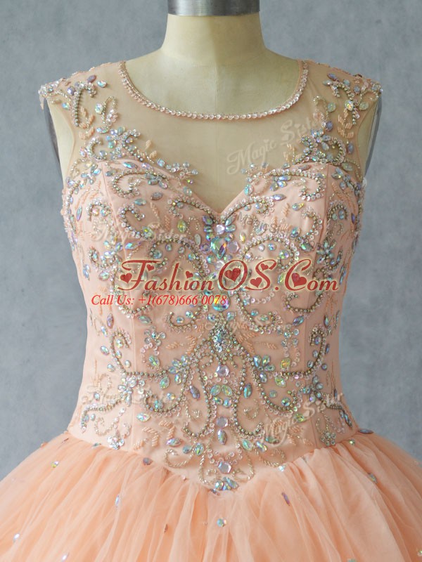 Peach Quinceanera Dress Sweet 16 and Quinceanera with Beading Scoop Sleeveless Lace Up