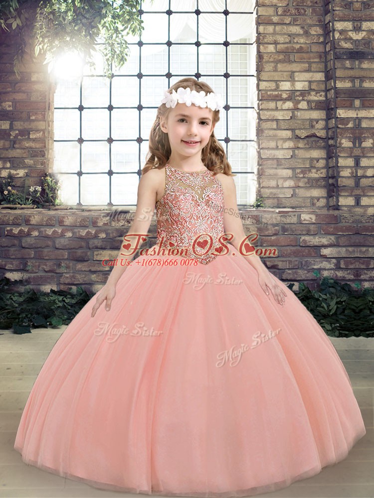 Home >  Special Occasion Dresses >  2019 Little Girl Pageant Dresses > Peach Scoop Neckline Beading Little Girls Pageant Dress Wholesale Sleeveless Lace Up