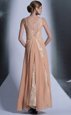 Silhouette: Column/Sheath Neckline: scoop Sleeve Length: sleeveless Hemline/Train: floor length Back Detail: side zipper Embellishment: lace Fabric: chiffon Shown Color: peach(Color & Style representation may vary by monitor.) Occasion: prom,party Season: spring,summer,fall,winter Fully Lined: Yes Built-In Bra: Yes
