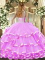 Peach Sleeveless Beading and Ruffled Layers Floor Length Quinceanera Dress