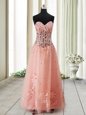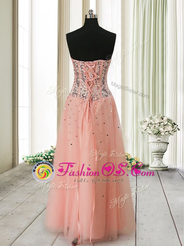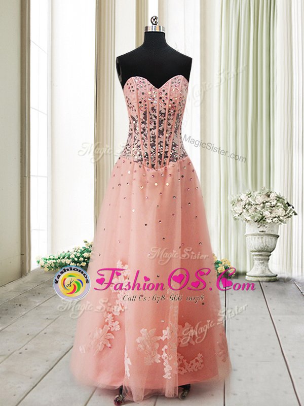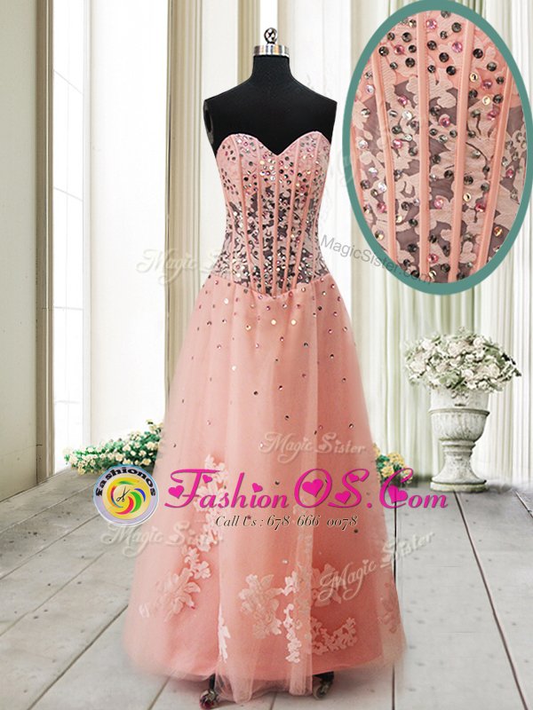 Peach Sleeveless Beading Ankle Length Prom Dress