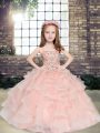 Peach Straps Lace Up Beading and Ruffles Child Pageant Dress Sleeveless