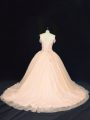 Peach Sweet 16 Quinceanera Dress Tulle Court Train Sleeveless Beading