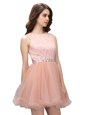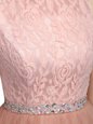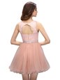 Peach Zipper Scoop Beading and Lace Organza Sleeveless