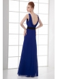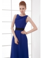 Peacock Blue Empire Bateau Floor-length Backless Prom Dress