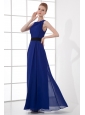 Home >  Prom Dresses >  Modest Prom Dresses > Peacock Blue Empire Bateau Floor-length Backless Prom Dress