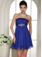 Peacock Blue Empire Beading 2013 Prom Dress With Mini-length In Mississippi