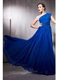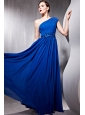 Home >  Prom Dresses >  Discount Prom Dresses > Peacock Blue Empire One Shoulder Floor-length Chiffon Beading Prom Dress