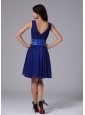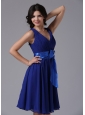 Are you joining in the party? Do you want to be the focus point, do you practice lone time? But now, the chance is coming, the moment good choice of dress is so important. The whole appearance is a soft chiffon royal blue short dress with a wide taffeta waistband accented with a larege bow. And the deep V-neckline and V shaped back will show your sexy bust and charming back that adds another dimension of beauty to an already lovely dress. A hidden zipper makes for easy off and on and secures the dress in place.This dress is a show stopper.