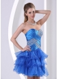 Home >  Prom Dresses >  New Arrivals > Peacock Blue Ruched Layered Sweetheart Cocktail Dress With Beading Decrate Bust in Washington