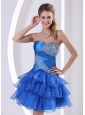 Peacock Blue Ruched Layered Sweetheart Cocktail Dress With Beading Decrate Bust in Washington