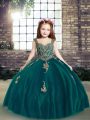Peacock Green Ball Gowns Straps Sleeveless Tulle Floor Length Lace Up Appliques Little Girl Pageant Gowns