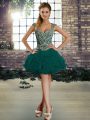 Peacock Green Lace Up Straps Beading and Ruffles Sweet 16 Dresses Tulle Sleeveless