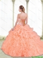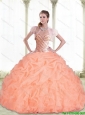 Perfect 2015 Sweetheart Peach Quinceanera Dresses with Beading and Pick Ups