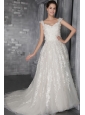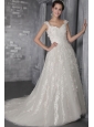 Perfect A-Line / Princess Straps Court Train Tulle Appliques Wedding Dress