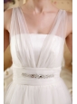 Cast a spell on the whole room by donning this exquisite strap A-line dress! The simple-style while extremely pute bodice, which culminates in a strap organza neckline. A finely ruched band wraps around above the natural waistline, and delicate beading makes the whole dress stand out.The exquisite organza covered above the graceful satin makes you  like a princess! What is more, a gorgeous and delicate lace up wonderfully completes the back.Don't hesitate!