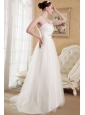 Perfect A-Line / Princess V-neck Brush Train Satin and Tulle Beading Wedding Dress
