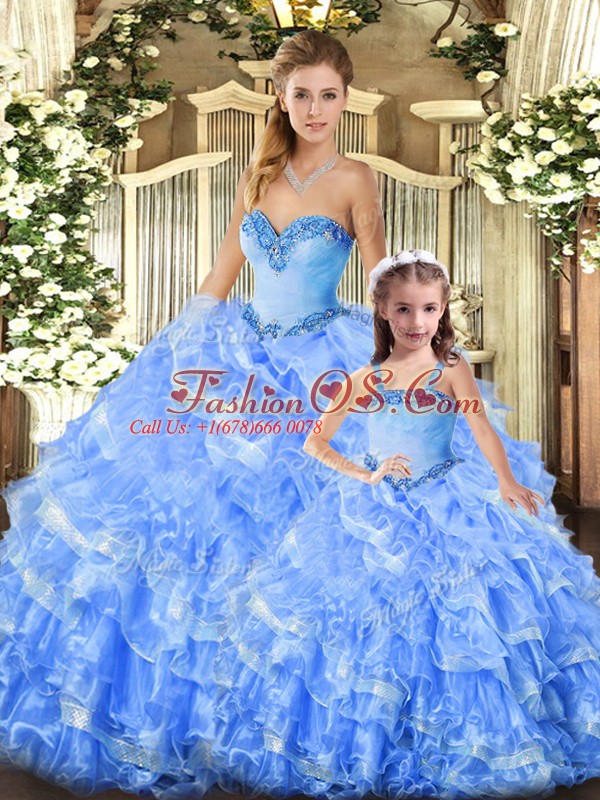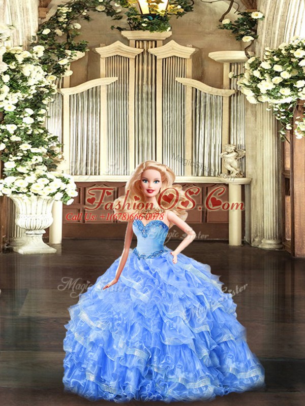 Home >  Quinceanera Dresses >  Detachable Quinceanera Skirts > Perfect Baby Blue Lace Up 15 Quinceanera Dress Beading and Ruffles Sleeveless Floor Length