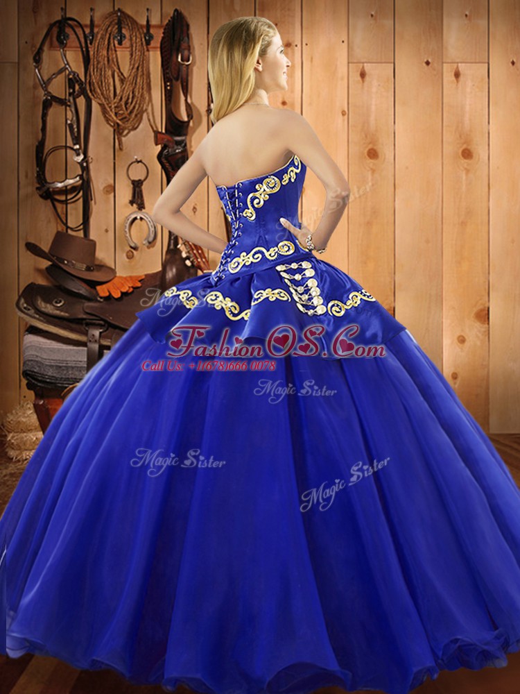 Perfect Ball Gowns 15th Birthday Dress Blue Sweetheart Tulle Sleeveless Floor Length Lace Up