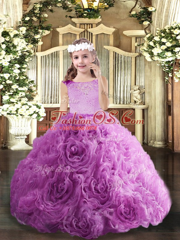 Perfect Ball Gowns Little Girl Pageant Dress Lilac Scoop Fabric With Rolling Flowers Sleeveless Floor Length Zipper