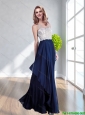 Perfect Bateau Floor Length Navy Blue Cheap Bridesmaid Dress with Lace and Ruching