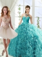 Home >  Quinceanera Dresses >  Perfect Quinceanera Dresses > Perfect Beaded and Applique Big Puffy Detachable Quinceanera Dresses in Aqua Blue