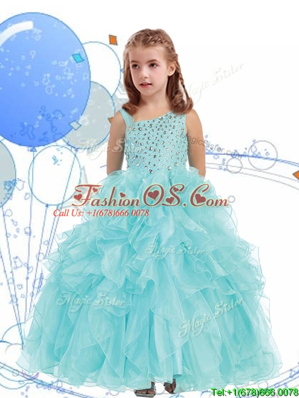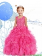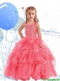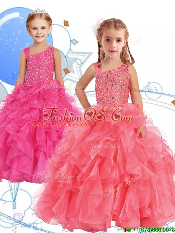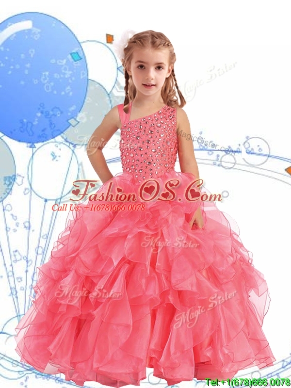 Home >  Special Occasion Dresses >  New Style Little Girl Pageant Dresses > Perfect Beaded and Ruffled Asymmetrical Neckline Little Girl Pageant Dress in Watermelon Red