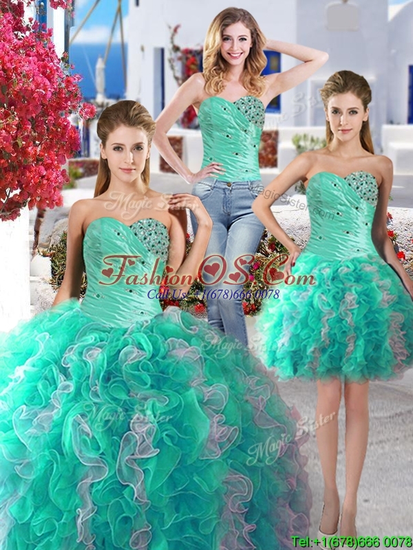 Perfect Beaded and Ruffled Detachable Quinceanera Dresses with Really Puffy