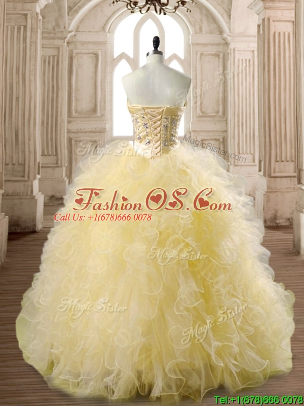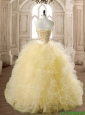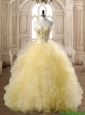 Perfect Beaded and Ruffled Tulle Quinceanera Dress in Yellow