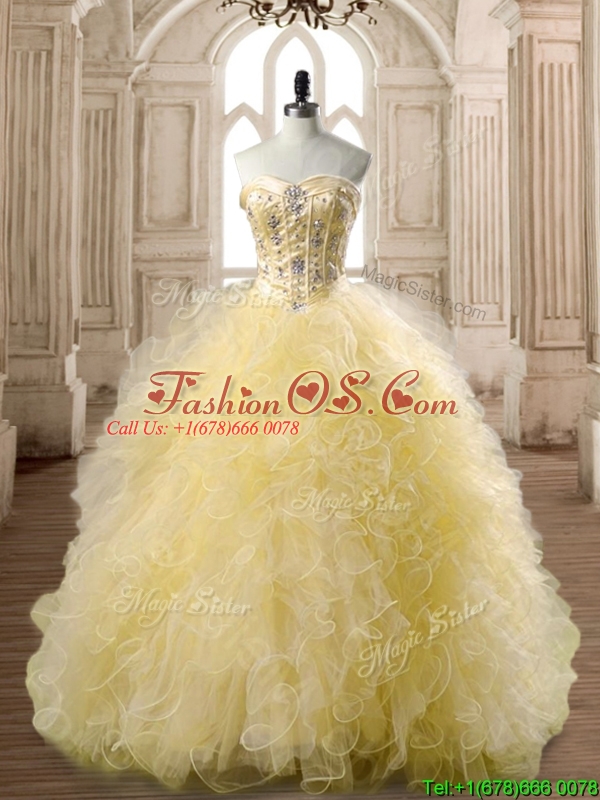 Home >  Quinceanera Dresses >  In Stock Quinceanera Dresses > Perfect Beaded and Ruffled Tulle Quinceanera Dress in Yellow