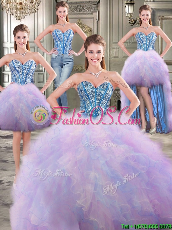 Perfect Big Puffy Rainbow Detachable Quinceanera Dresses with Beading and Ruffles