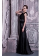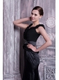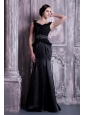 Home >  Evening Dresses > Perfect Black Column Straps Evening Dress Elastic Woven Satin Beading Brush Train